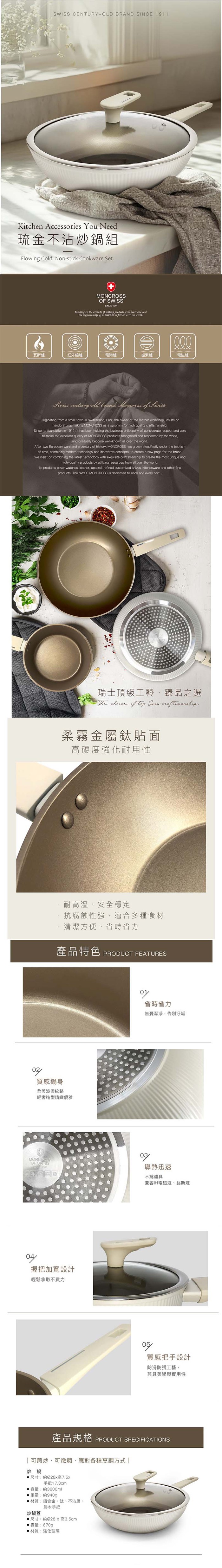 【瑞士MONCROSS】琉金不沾28cm炒鍋含蓋組 AC1070A128GYGD3101