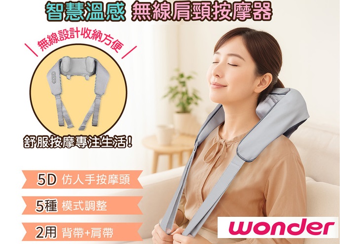 【WONDER】 智慧溫感無線肩頸按摩器 WB-M20BU