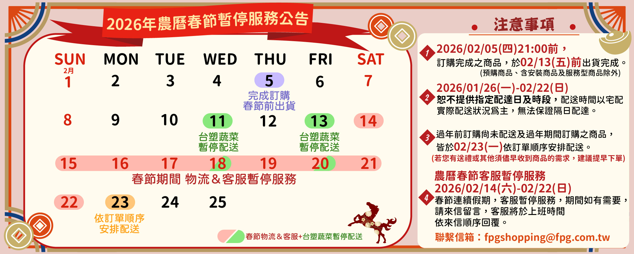 春節配送及客服公告
