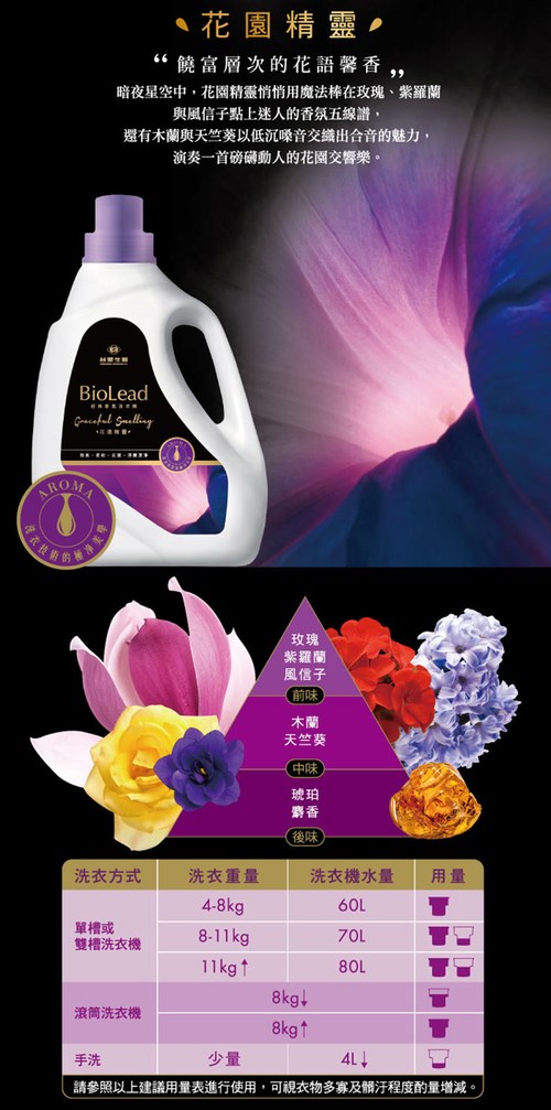 品名:BioLead經典香氛洗衣精補充包 花園精靈1.8kg 製造商:台塑生醫科技股份有限公司 規格:1.8kg*3包 製造日期:標示於瓶身(月/日/年) 保存期限:3年 保存方式:請放置於乾燥陰涼處,避免陽光照射,如使用補充包,開封後請盡快倒入瓶裝,避免接觸空氣日久變質。
