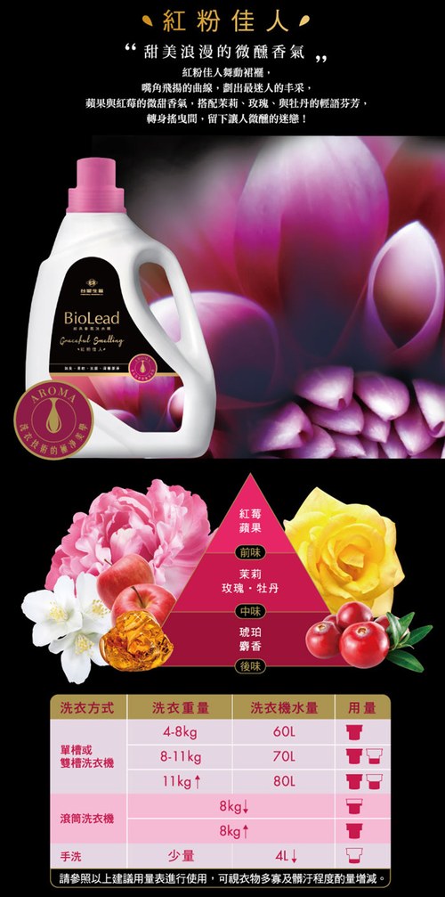 品名:BioLead經典香氛洗衣精補充包 紅粉佳人1.8kg 製造商:台塑生醫科技股份有限公司 規格:1.8kg*3包 製造日期:標示於瓶身(月/日/年) 保存期限:3年 保存方式:請放置於乾燥陰涼處,避免陽光照射,如使用補充包,開封後請盡快倒入瓶裝,避免接觸空氣日久變質。