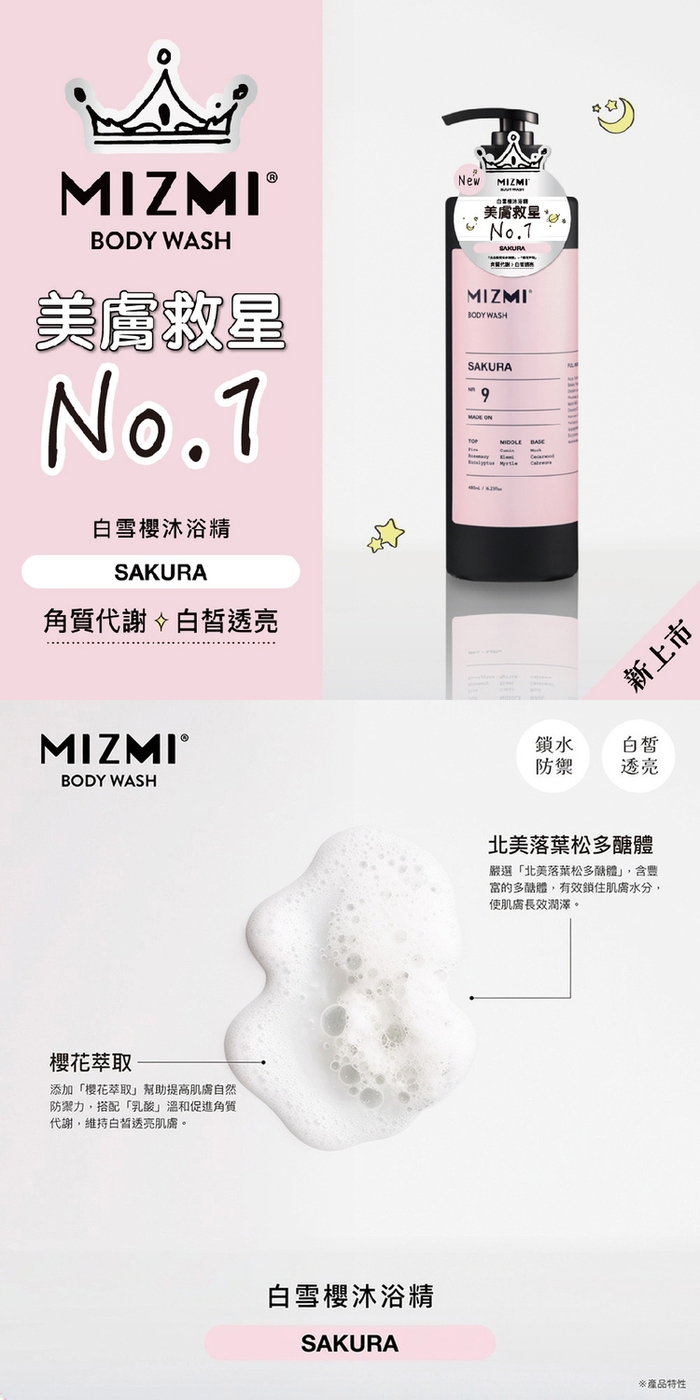 商品規格:MIZMI白雪櫻沐浴精480ml