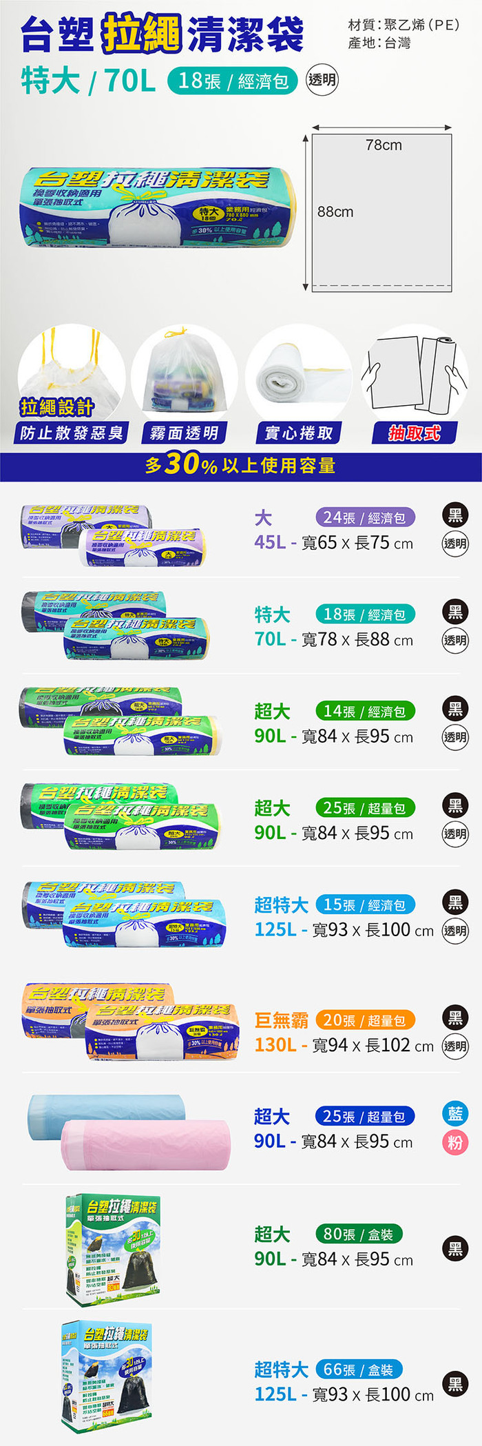 ● 78*88(cm),70L,18張