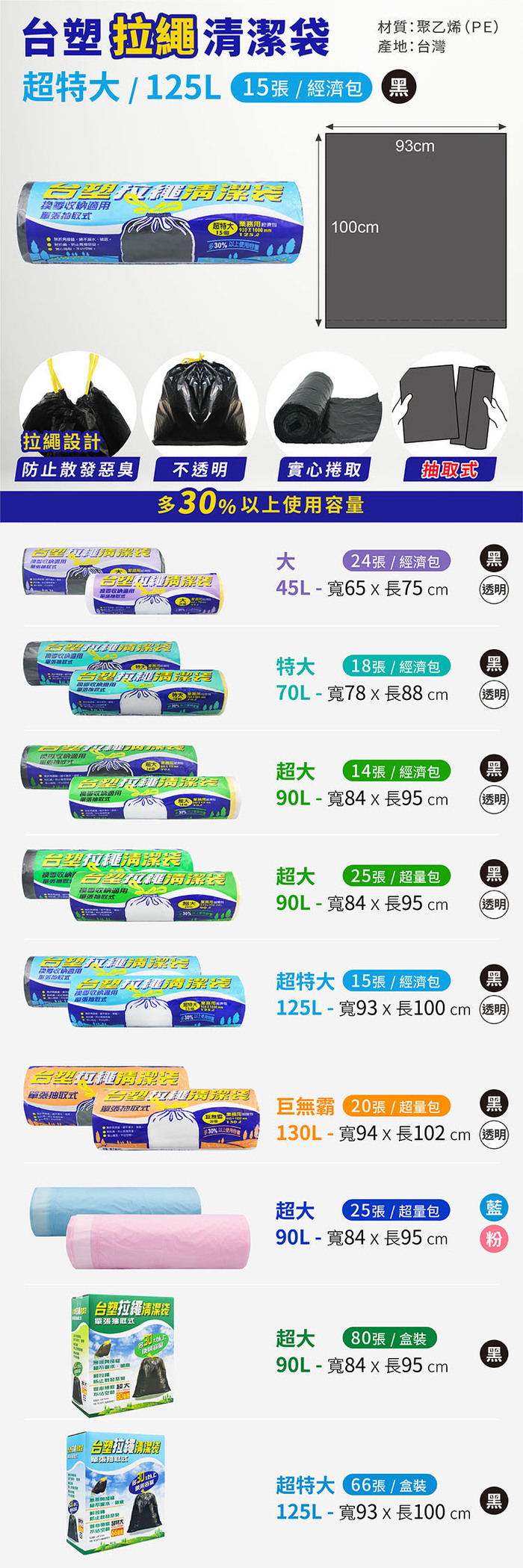 ● 93*100(cm),125L,15張