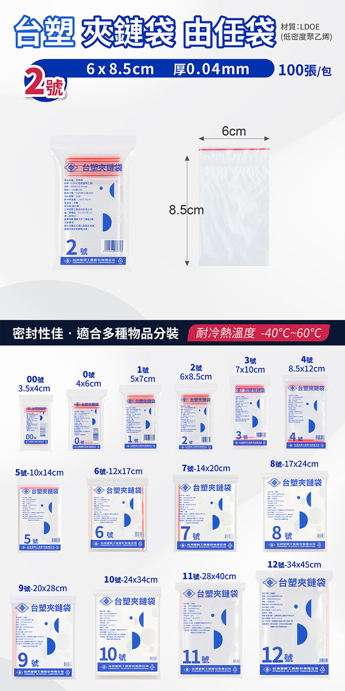 【 台塑夾鏈袋 由任袋 2號 (6*8.5cm) (100張) X 120包】