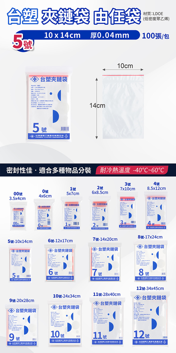【 台塑夾鏈袋 由任袋 5號 (10*14cm) (100張) X 50包】