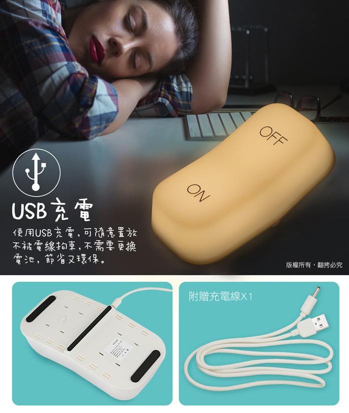 USB充電式 ON-OFF開關造型 重力感應燈(黃光)