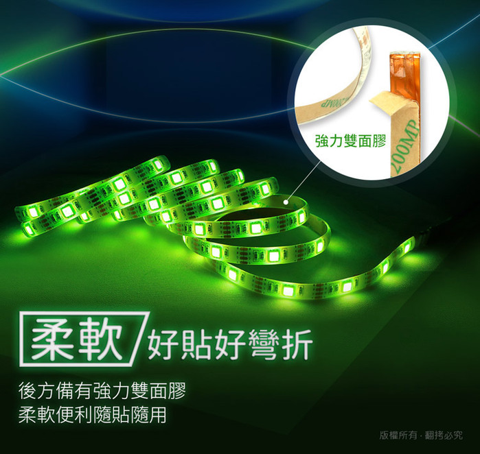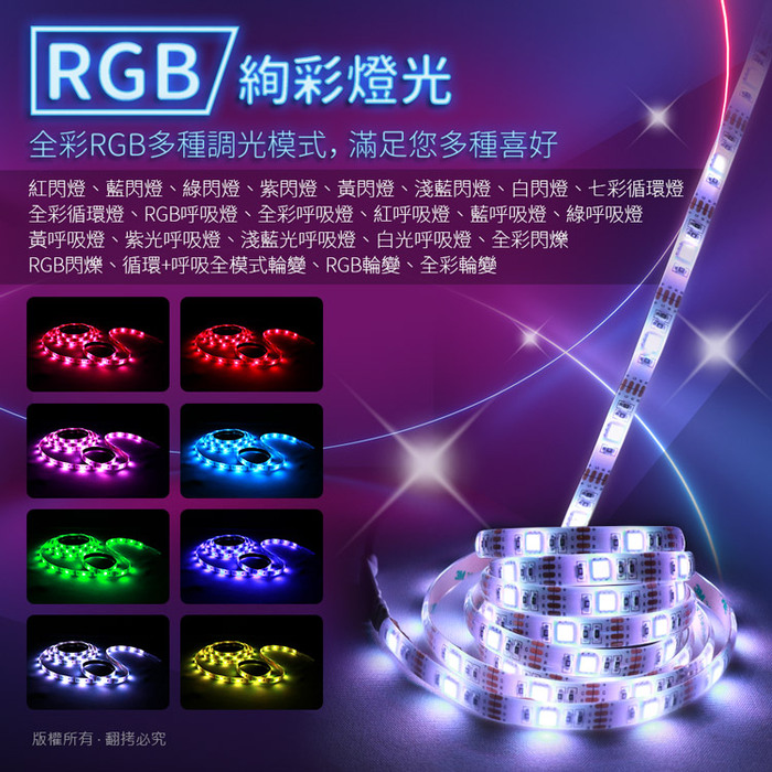 - .商品名稱:aibo USB高亮度黏貼式 RGB全彩LED防水軟燈條(多種模式調光)
