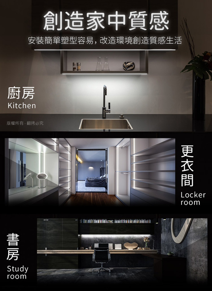 隨開即亮滿足您個人的喜好與環境需求,可安裝於桌子、衣櫃