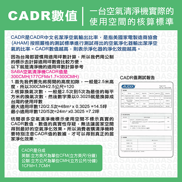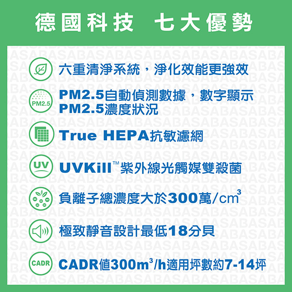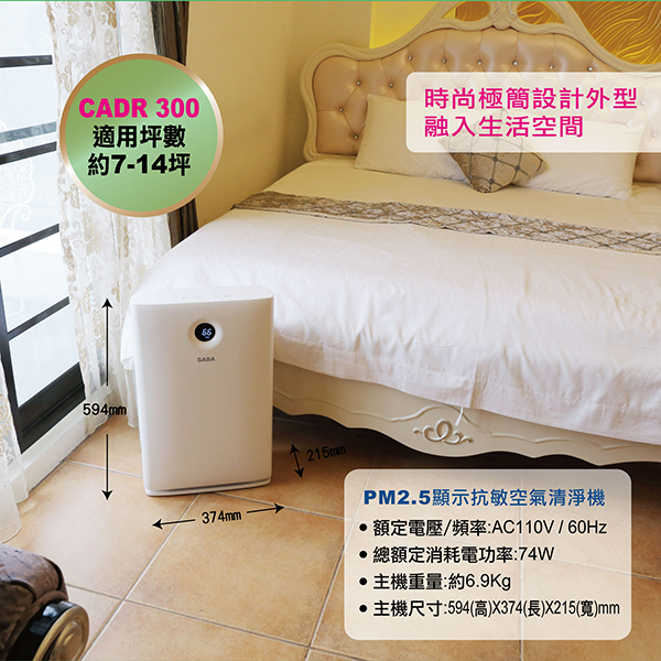 ◆CADR值 300 m3/h,適用坪數約7-14坪