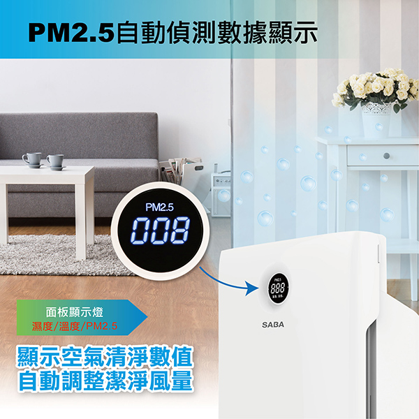 ◆PM2.5自動偵測數據,數字顯示PM2.5濃度狀況 清淨效果一目了然 {PM2.5濃度狀況→溫度→濕度(自動循環顯示)}