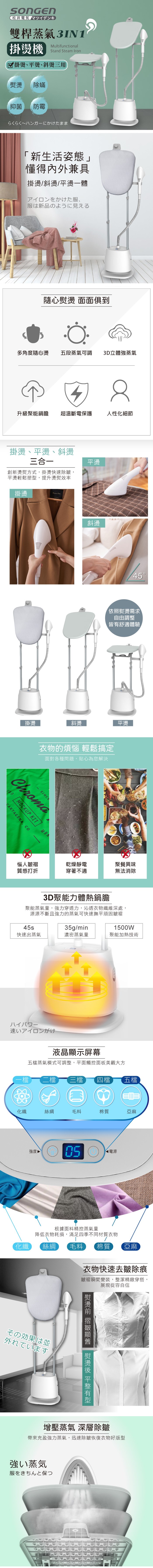 【日本SONGEN】松井直立式雙桿蒸氣除蟎掛燙機