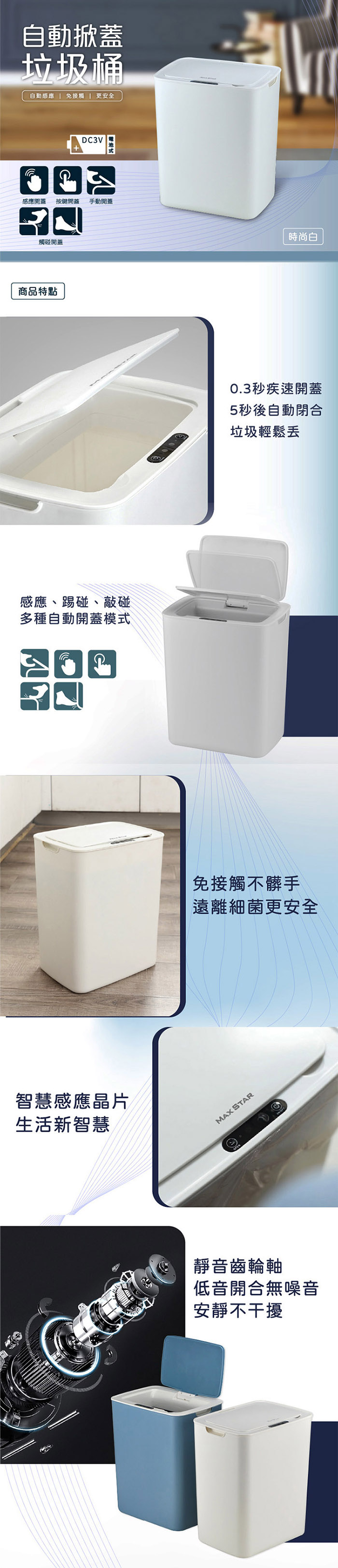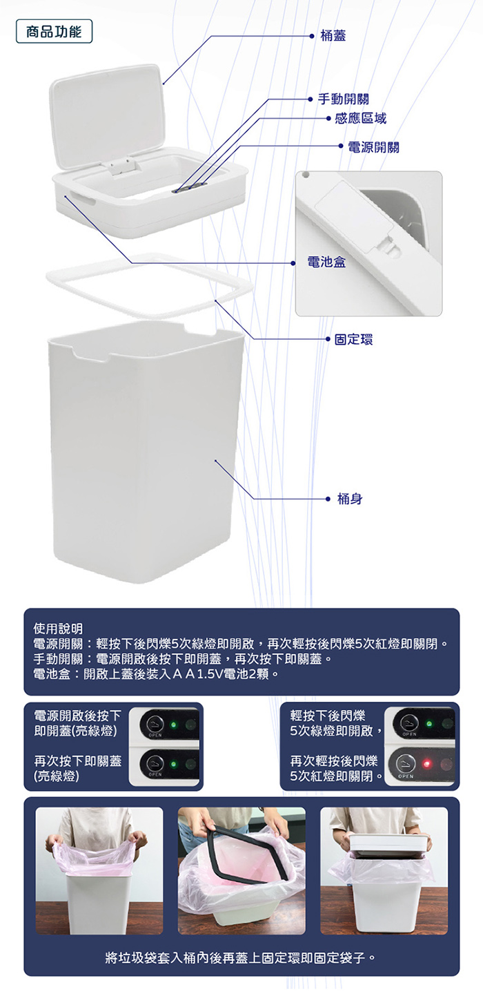 3. 0.3秒疾速開蓋,5秒後自動閉合,垃圾輕鬆丟。