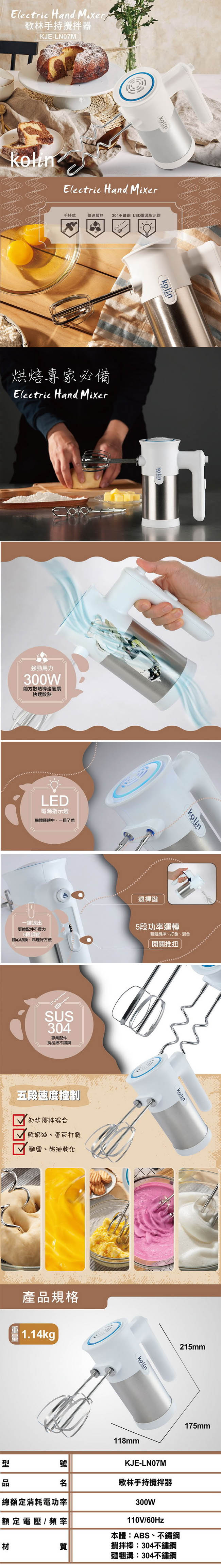歌林 304不鏽鋼手持攪拌器 KJE-LN07M