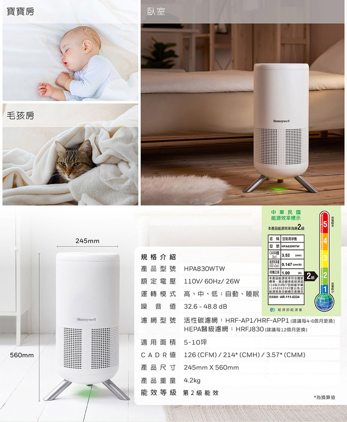 HEPA濾網 HRFJ830(更換頻率:12個月)