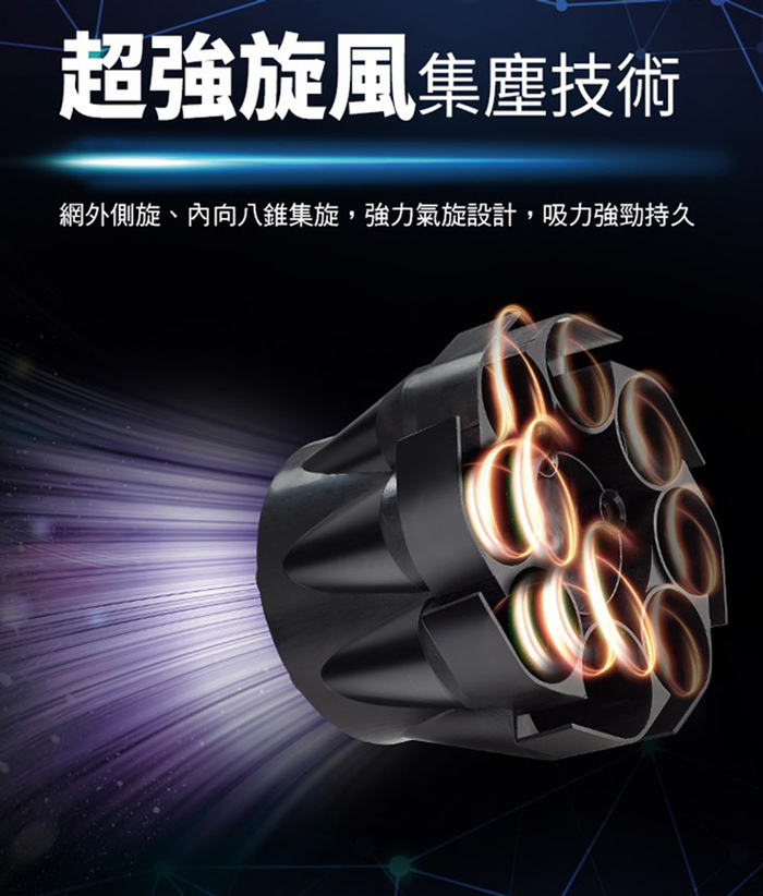 ‧【超強旋風集塵技術】八錐集旋強力氣旋設計,吸力強勁持久