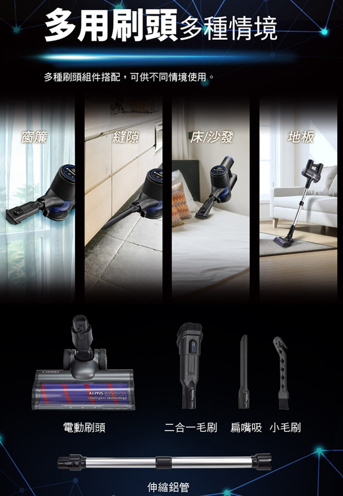 ‧【使用壽命長】採用DC無刷馬達吸力更強勁,使用壽命更長