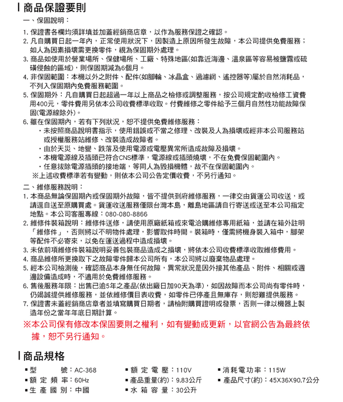 - 商品型號:AC-368