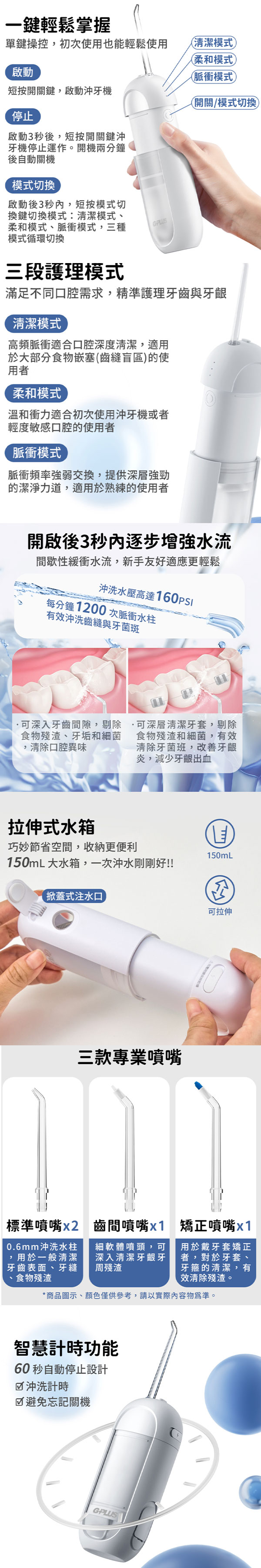 ◎具備清潔模式、柔和模式、脈衝模式等三段護理模式