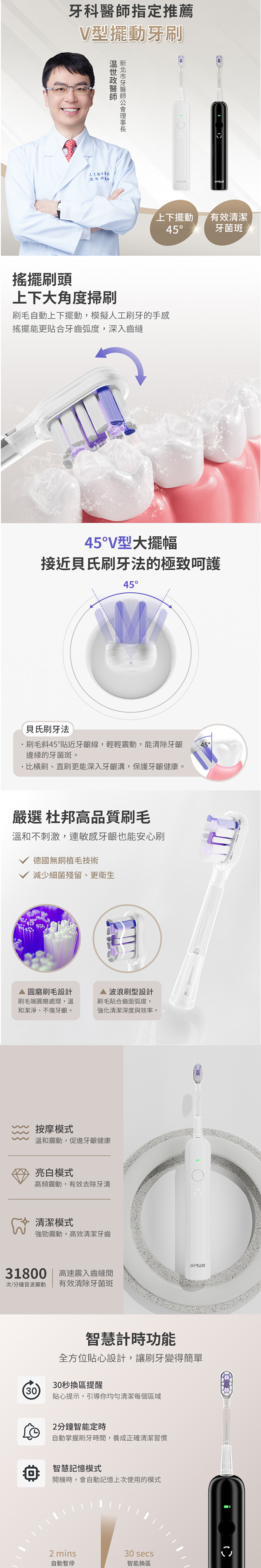 ◎智慧計時功能--全方位貼心設計,讓刷牙變得簡單;30秒換區提醒--貼心提示,引導您均勻清潔每個區域;2分鐘智能定時--自動掌握刷牙時間,養成正確清潔習慣;智慧記憶模式--開機時,會自動記憶上次使用的模式