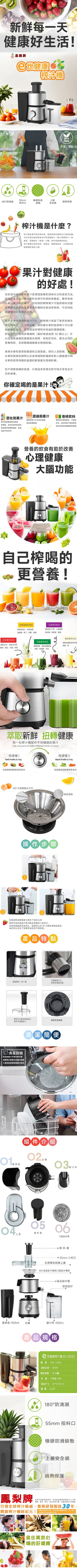- 獨創研發改良慢速榨汁,保留更多自然純淨營養成分