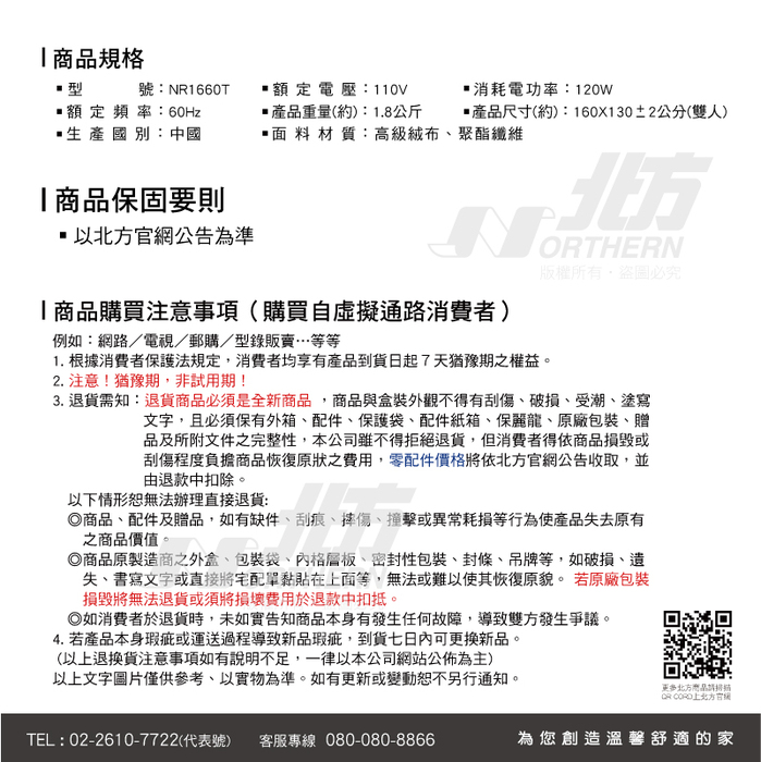 客服專線:0800-808866 服務時間:週一~週五 9:10~18:00 客服信箱:polyfan7@northern.com.tw