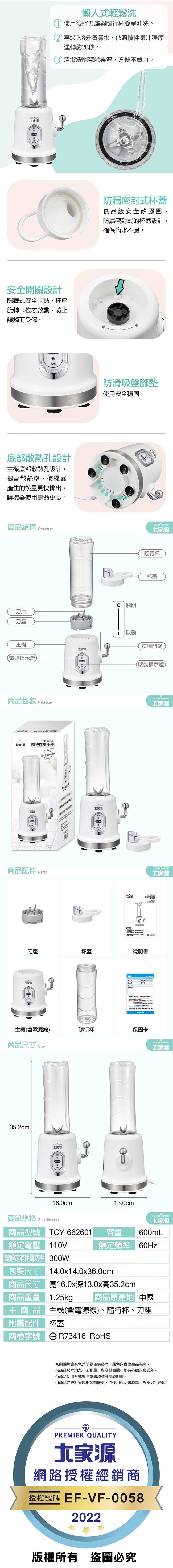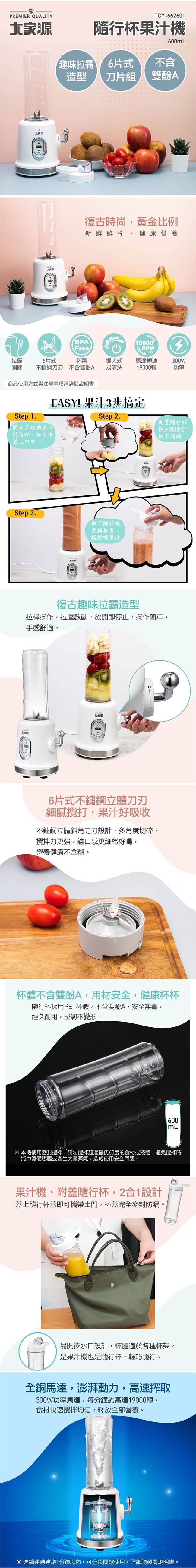 大家源 拉霸造型6片不鏽鋼刀頭隨行杯果汁機600ml TCY-662601