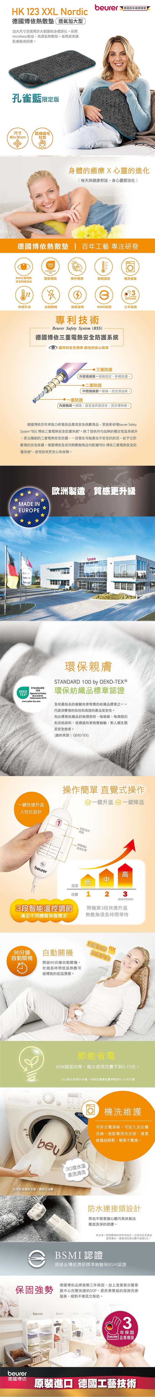 德國beurer博依 NORDIC熱敷墊透氣加大型(長絨毛款) 60x30cm HK-123XXL-N