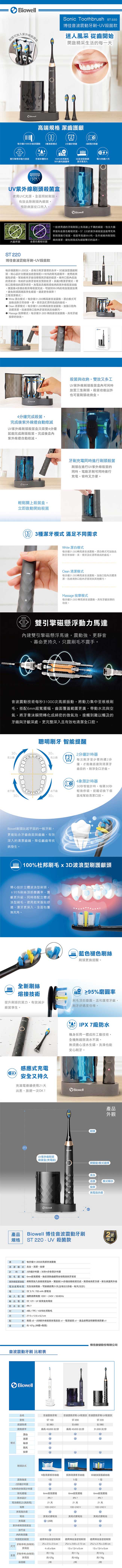 配件:刷頭x3、紫外線殺菌充電底座x1、電源插頭x1、產品使用說明書暨保固書x1