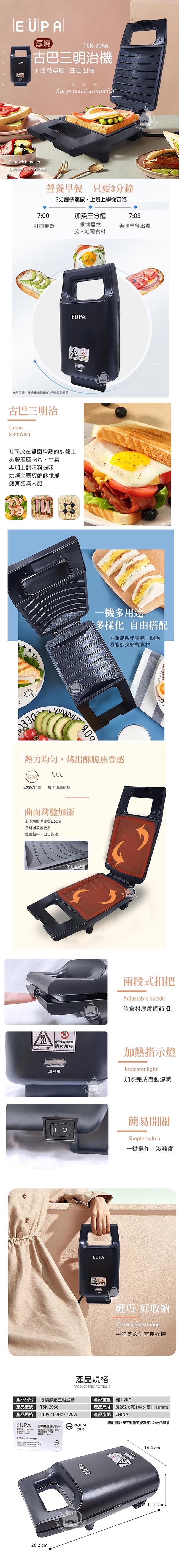 EUPA優柏 古巴三明治機/厚燒熱壓三明治機 TSK-2056