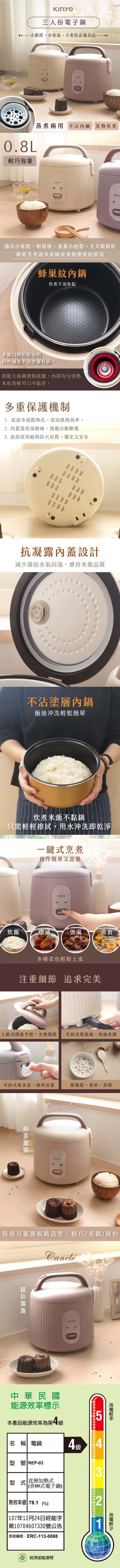 KINYO 三人份電子鍋/小電鍋/飯鍋//蒸鍋/電鍋/煮飯鍋/燉鍋(REP-03)