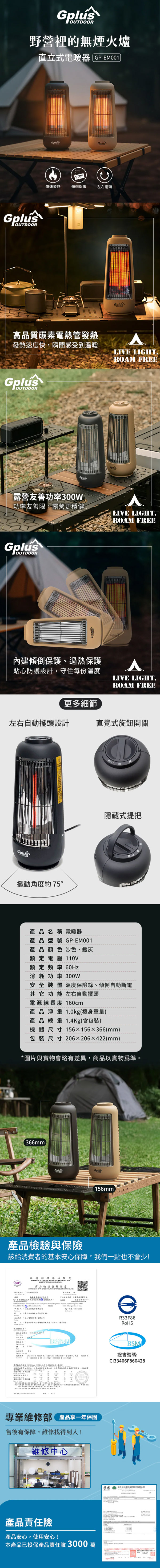 ◎型號:GP-EM001直立式電暖器