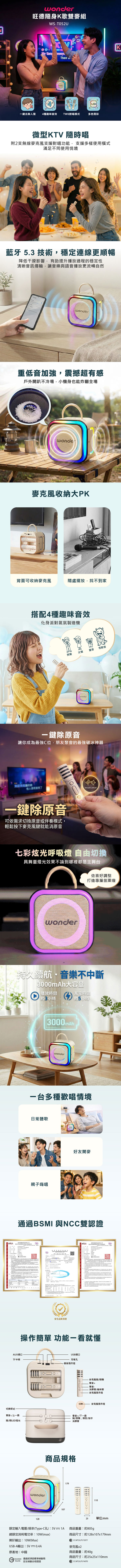 配件:●麥克風*2 ● 充電線*1、●說明書(含保卡)*1
