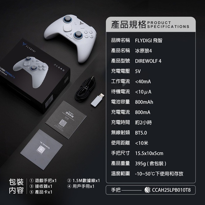 包裝內容:遊戲手把x1、1.5M數據線x1、接收器x1、用戶手冊x1、產品卡x1