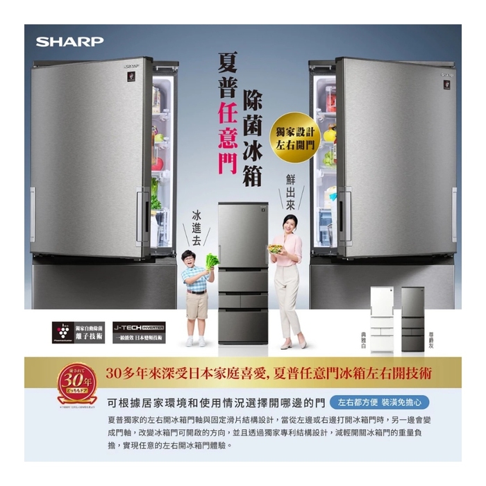 品名:SHARP 夏普 SJ-MW51KT 504L自動除菌離子左右開任意門五門變頻冰箱 典雅白-W/尊爵灰-H