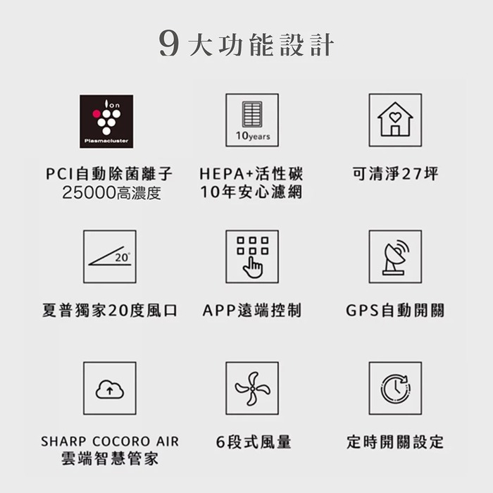 HEPA過濾網(型號,壽命):〇,FZ-G75H2E(壽命10年)*濾網配件視使用環境不同可能需提早更換
