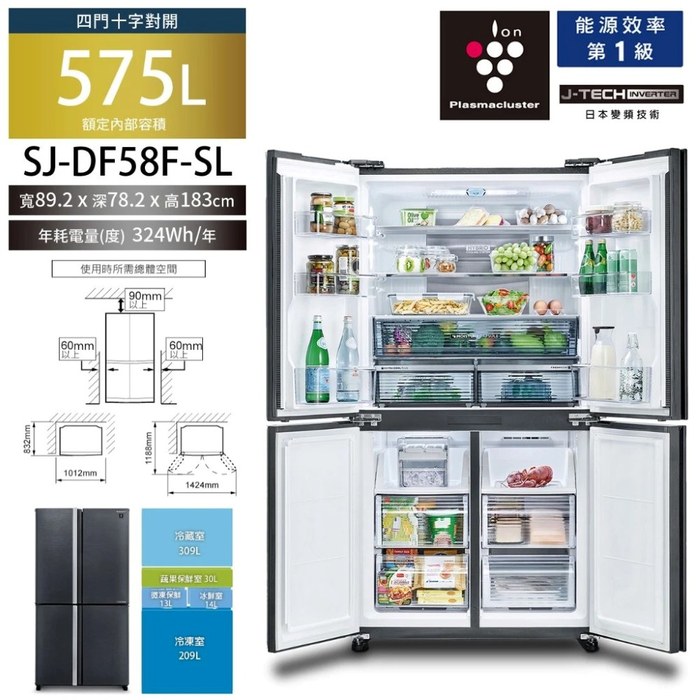 品名:SHARP 夏普 SJ-DF58F-SL 575L自動除菌四門對開變頻電冰箱