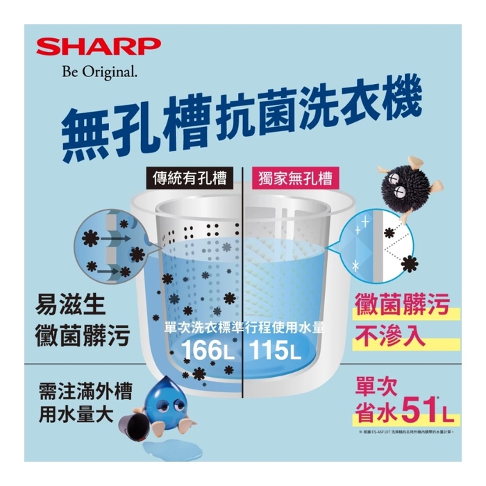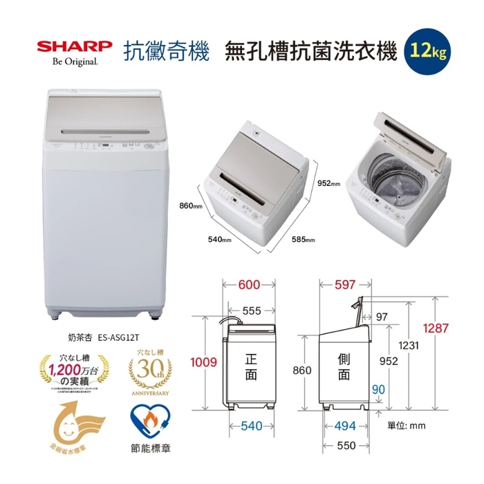 品名:SHARP 夏普 12KG ES-ASG12T無孔槽變頻洗衣機