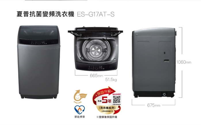 品名:SHARP 夏普 17KG ES-G17AT-S抗菌系列洗衣機
