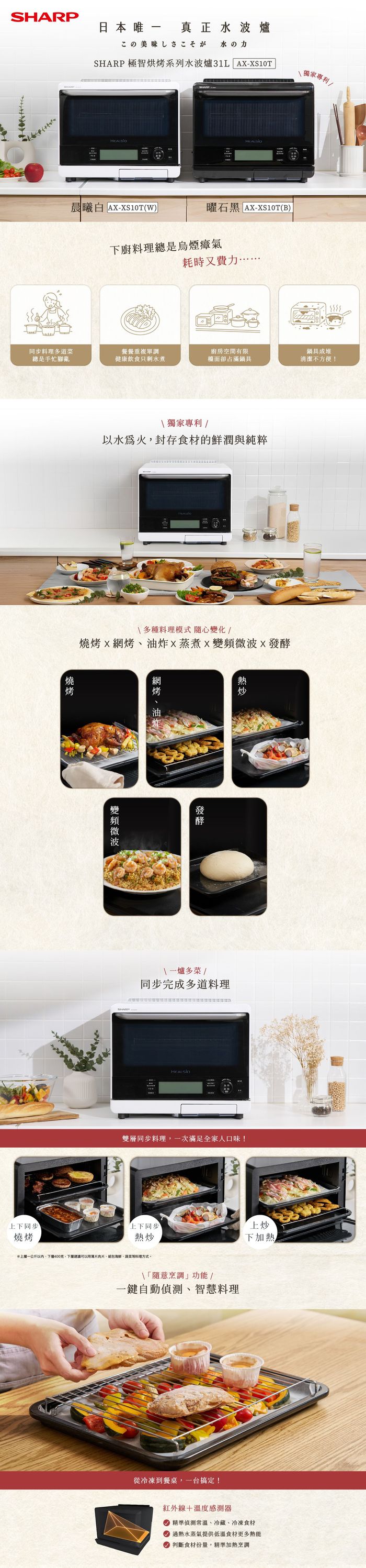 重點加熱:水波烤箱/烤箱/水波燒烤/燒烤/蒸煮/微蒸煮/燉煮/發酵/微波/解凍