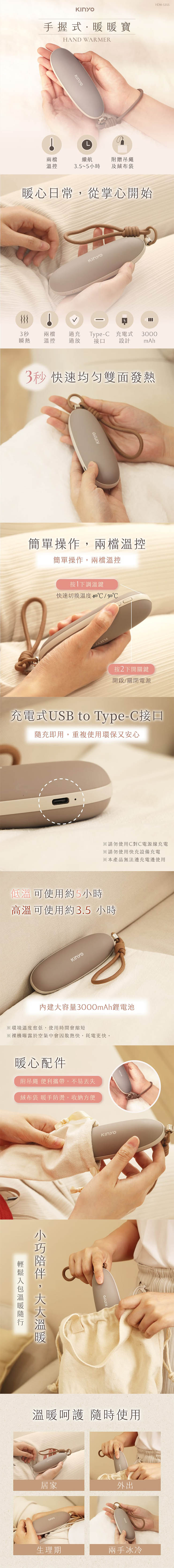 KINYO 兩檔溫控手握式暖暖寶(棕色)附絨布收納袋 HDW-5355BR