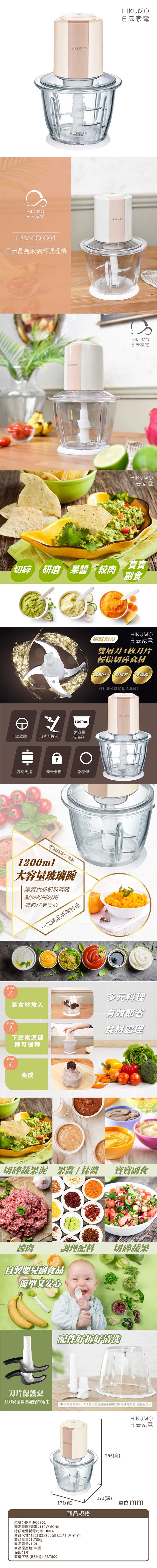 日云 晶亮玻璃杯調理機1200ml HKM-FC0301