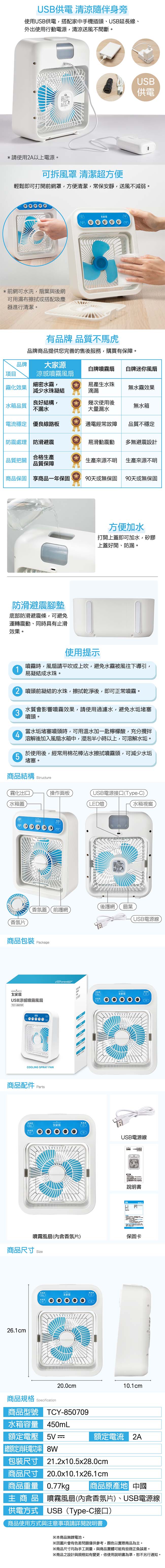 大家源 三段風速三段噴霧USB涼感風扇 TCY-850709
