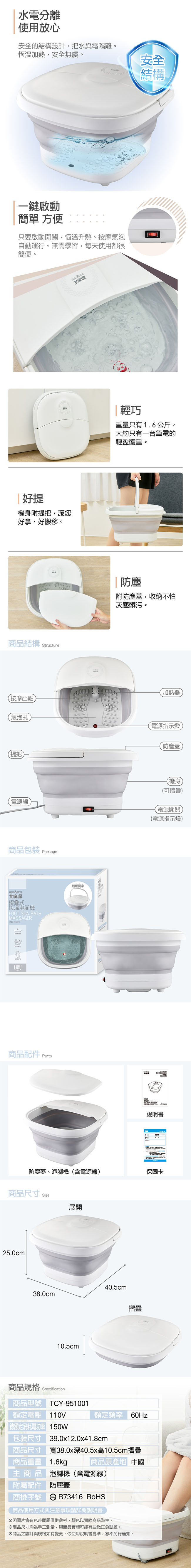 大家源 摺疊式恆溫泡腳機10L(附防塵蓋) TCY-951001