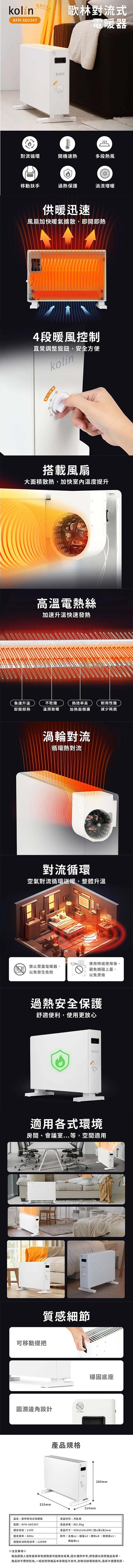 歌林Kolin 四檔模式對流式電暖器 KFH-SD2367