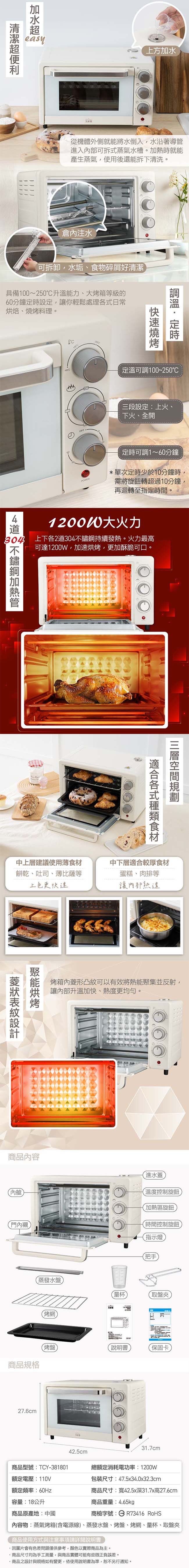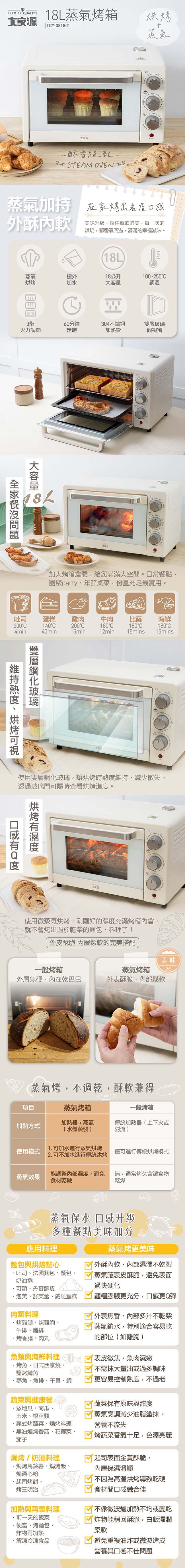 大家源 蒸氣烤箱18L(附量杯+取盤夾) TCY-381801