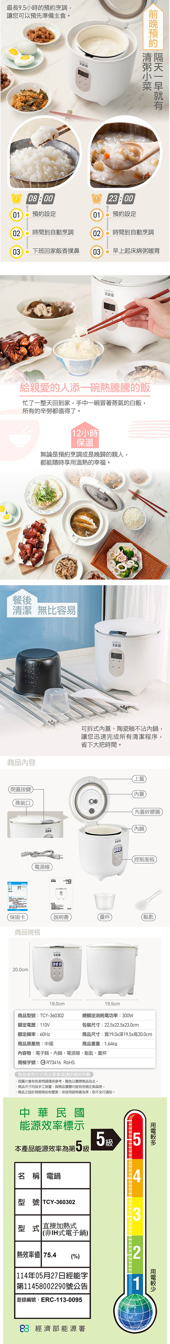 大家源 三人份mini陶瓷電子鍋(附量杯+飯匙) TCY-360302