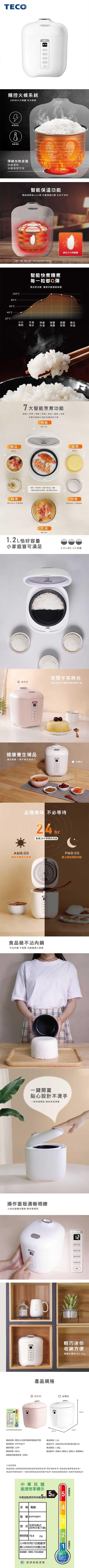 東元TECO 多功能微電腦電子鍋1.2L(冰雪白) XYFYC0277-WH