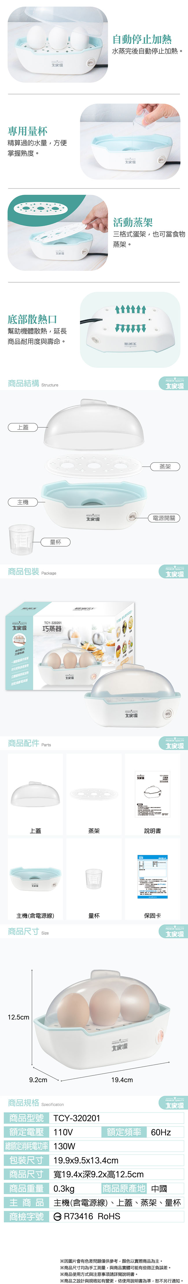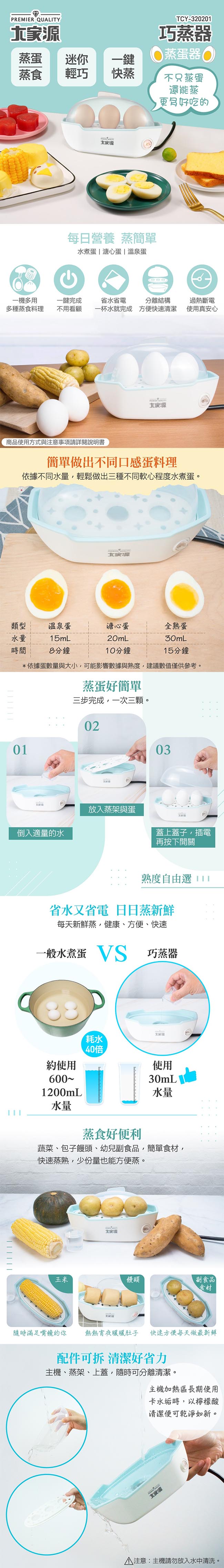 大家源 360度立體循環加熱3顆蛋巧蒸器/蒸蛋器(附量杯) TCY-320201