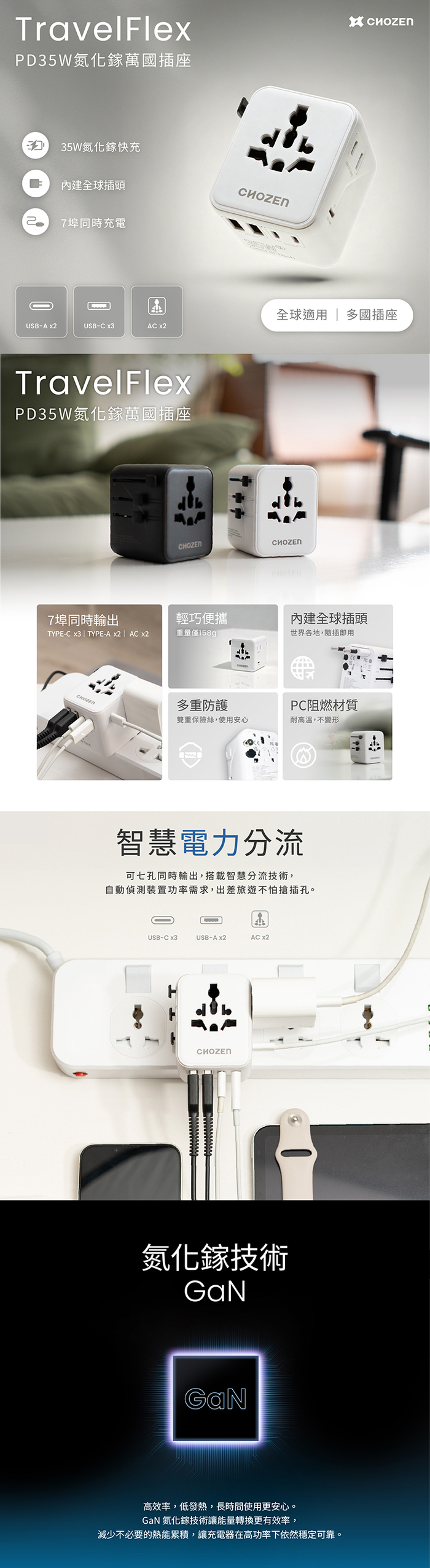 1. 氮化鎵高速快充 PD35W/QC3.0,節能省電省時。